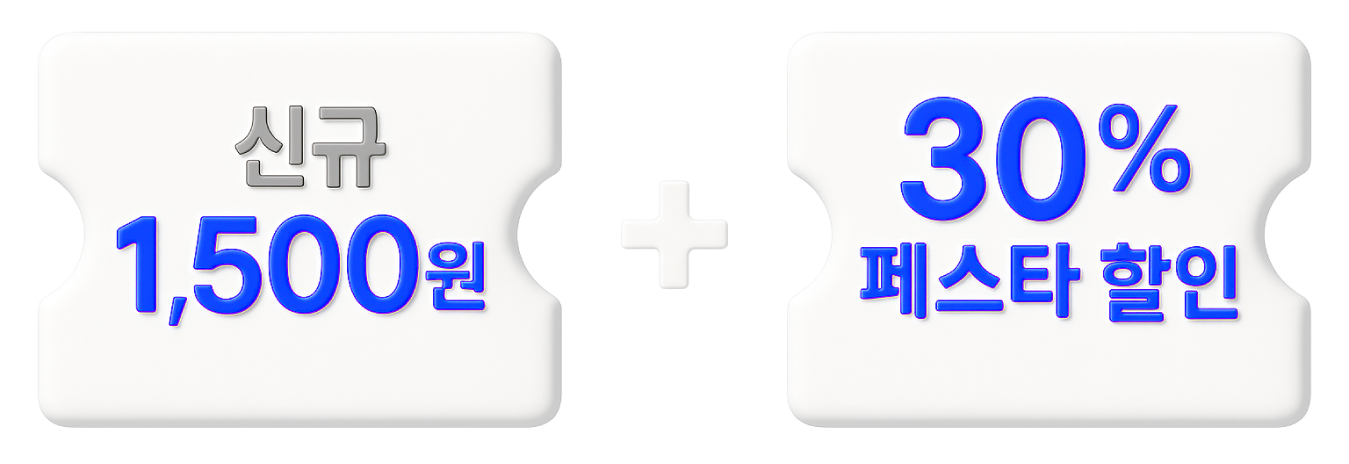 회원가입 1,500원 쿠폰 + 30% 페스타 기본 할인