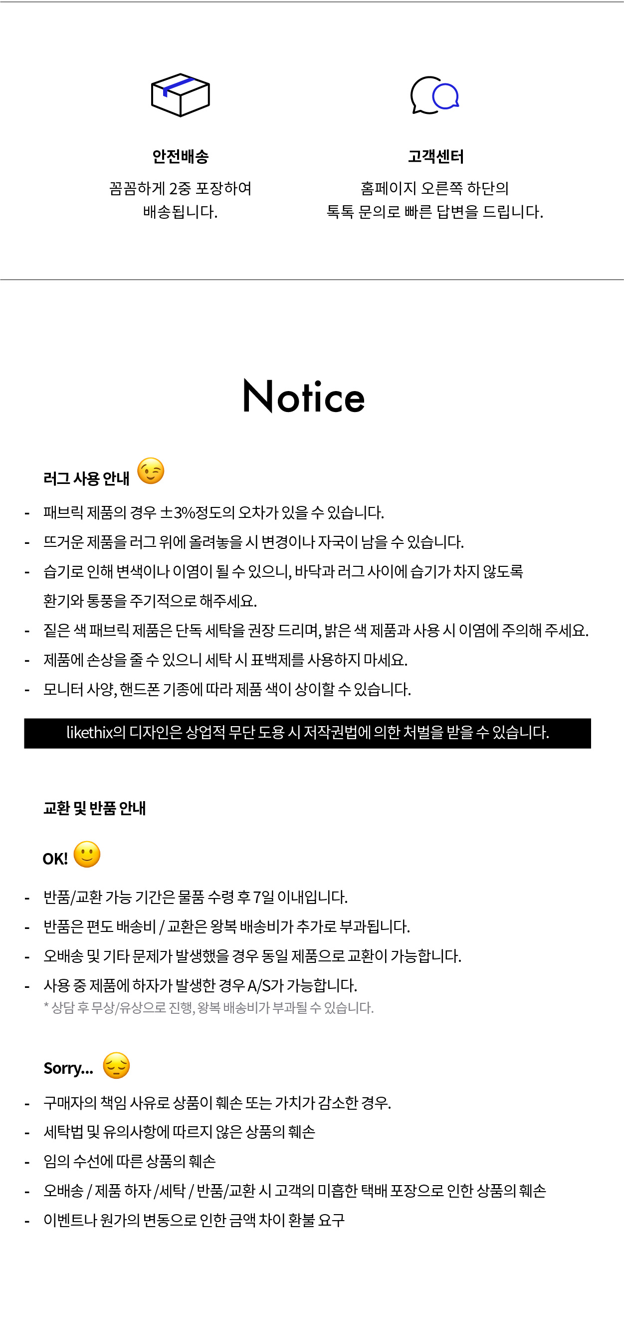 | 택배배송│합배송 가능 추가 배송비 : +3,000원(제주도), +5,000원(도서 산간) |