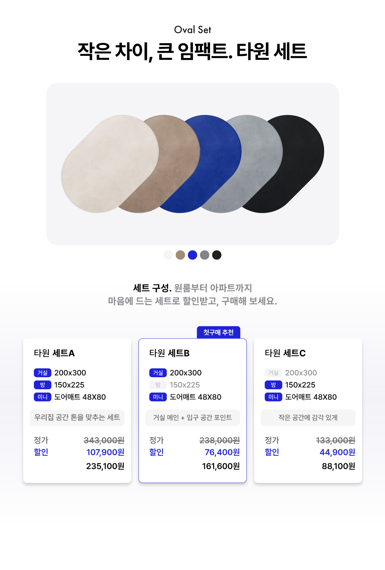 - [타원 세트 C] 컴팩트 세트방 150×225 + 도어매트(반원) 48×80