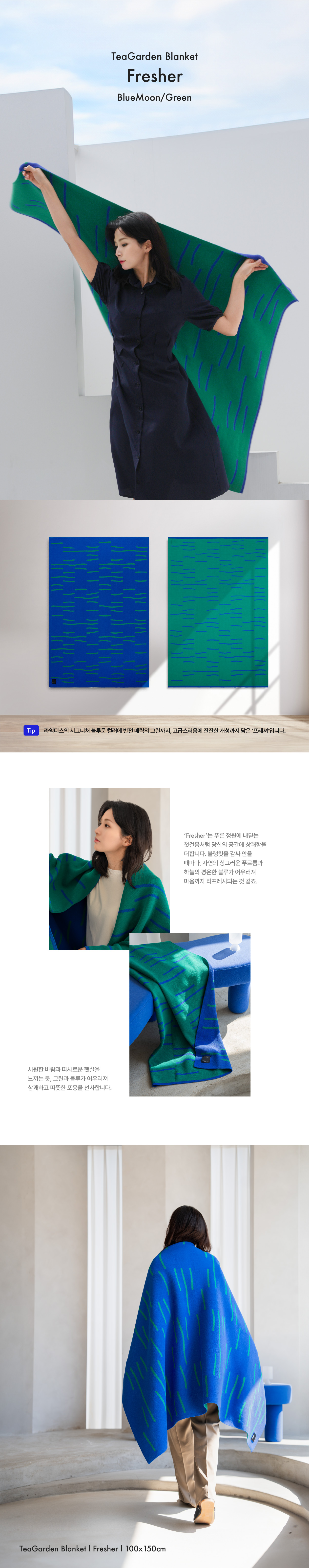 차 밭(Tea Garden)의 고요한 결을 담은 블랭킷은 부드러운 촉감과 가벼운 휴식을 선사합니다. 사계절 내내 사용하기 좋으며, 감성적인 컬러와 패턴으로 어디서든 포근함을 더합니다.