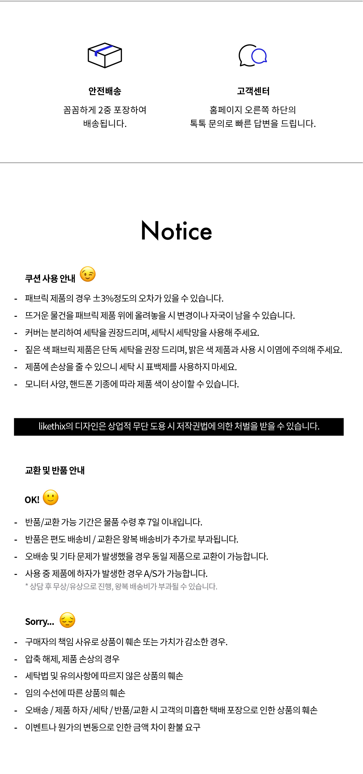 커버만 : 35,000원 > 28,000원(20%할인) 충전재만 : 30,000원 > 24,000원 (20%할인) |