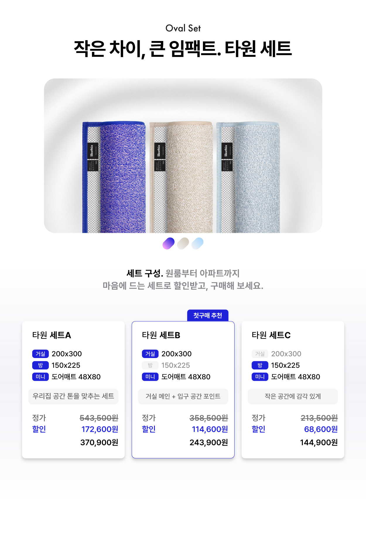 - [타원 세트 C] 컴팩트 세트방 150×225 + 도어매트(반원) 48×80