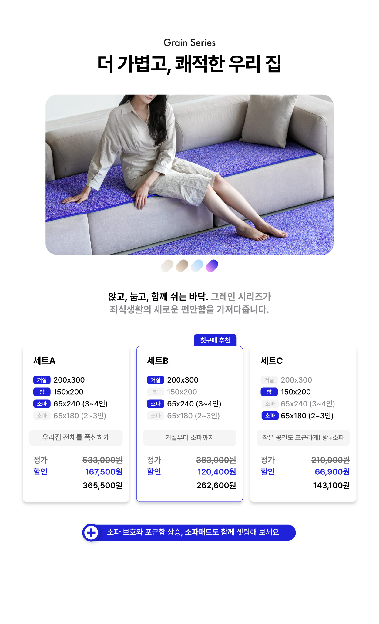세트 C 방 150×200 + 소파패드 65×180